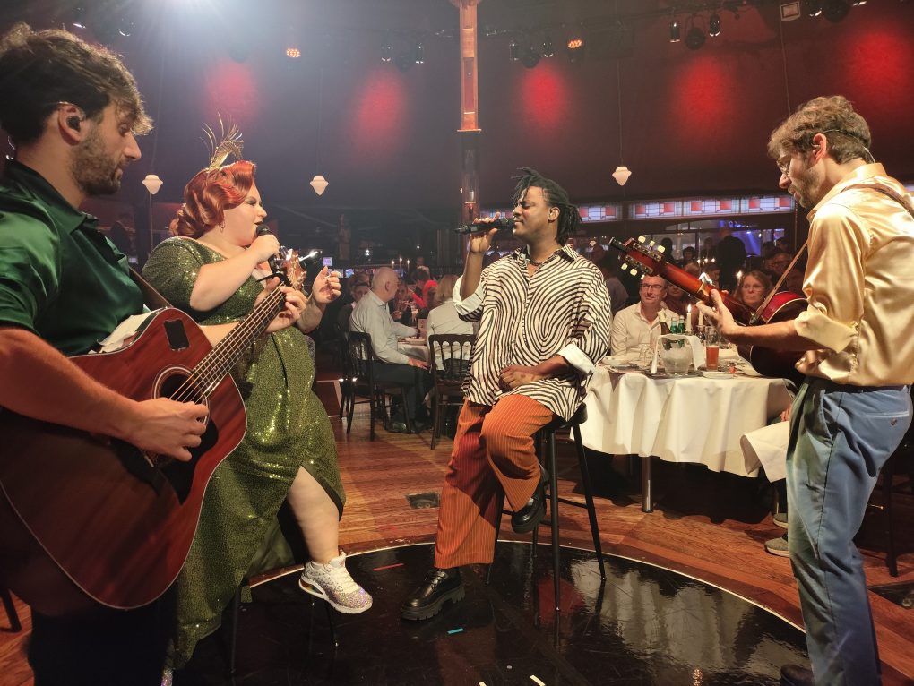 Zwischen den Barhockern und Balladen entfalten sich poetische wie spektakuläre Momente: Mario Español begeistert mit kraftvoller Artistik am Chinesischen Mast, Polina Makarova zeigt anmutige Equilibristik, Tonghui Ni balanciert beeindruckend auf dem Schlappseil, und Rosa Autio bringt mit Clownerie und Fußjonglage eine leise Melancholie auf die Bühne. Für musikalische Gänsehaut sorgt Yamisava mit seinem gefühlvollen Afro-Soul, während die Berliner Band The Geschmacksverstärkers den Soundtrack zu dieser nächtlichen Reise liefert.